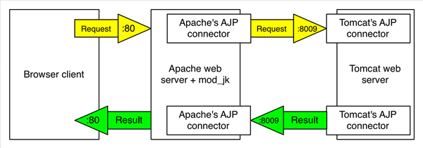 mod_jk는 apache와 tomcat을 연동하기 위한 모듈로 AJP 프로토콜을 이용하여 apache에 들어오는 요청 중 tomcat이 처리할 요청을 AJP 포트를 통해 tomcat에 전달하고 그에 대한 응답을 받는 역할을 수행합니다.