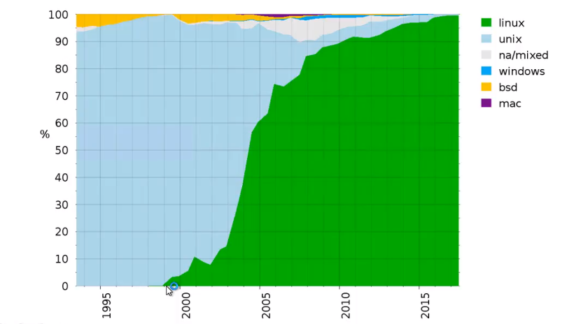 슈퍼컴퓨터 시장에서는 리눅스의 점유율이 거의 100%에 육박합니다. 개발자 입장에선 Windows 기반보단 UNIX 기반의 소프트웨어가 많기 때문에 UNIX의 기능이 필요하기 때문에 LINUX 기반을 배우는 것이 합리적인 개발을 할 수 있습니다.