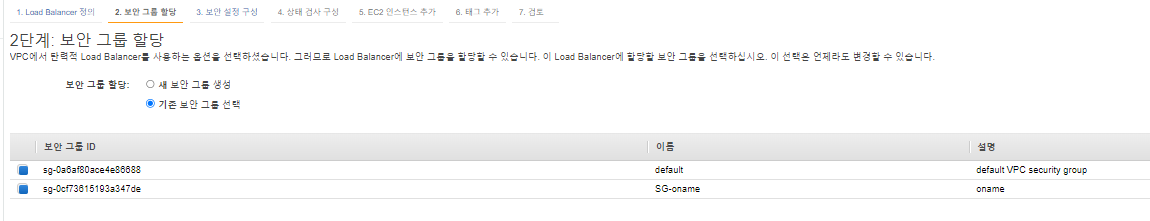 5. 보안그룹을 할당해줍니다. 로드밸런서의 인바운드 규칙을 설정할 수 있습니다.