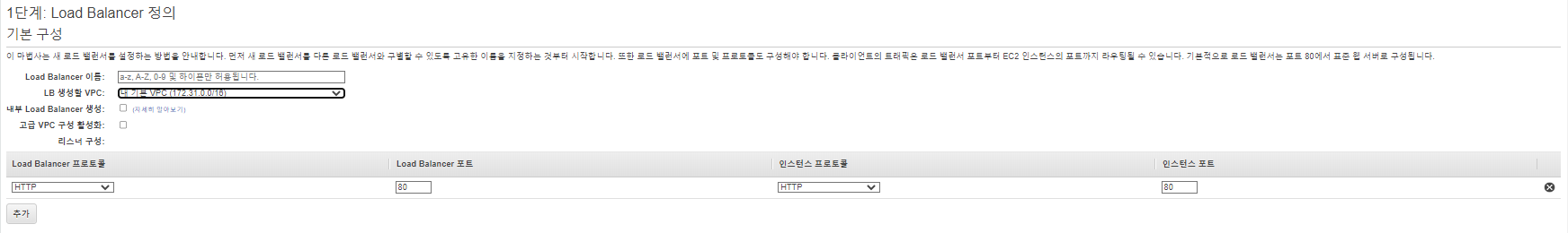 2. 로드밸런서 이름 및 VPC 등등을 설정해줍니다. 가장 중요한 부분은, 로드밸런서의 프로토콜 설정입니다