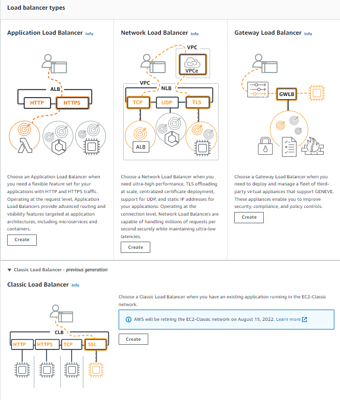 1. 제일 아래에 있는 Classic load balancer 를 클릭한다