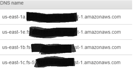 7. 6번째 순서의 DNS Names를 선택하면 아래와 같이 mount point 확인 가능