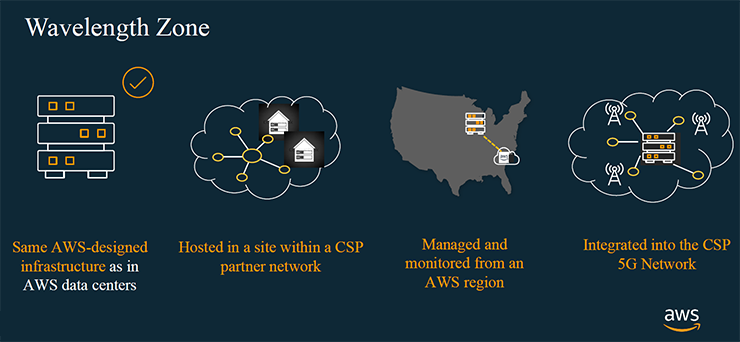 AWS Wavelength는 AWS 컴퓨팅 및 스토리지 서비스에 5G 네트워크의 높은 대역폭과 매우 짧은 대기 시간을 결합하여 개발자가 새로운 종류의 애플리케이션을 혁신하고 제작할 수 있게 해줍니다. Wavelength 영역은 미국의 Verizon, 일본의 KDDI, 한국의 SK 텔레콤, 영국과 독일의 Vodafone, 캐나다의 Bell과의 협업을 통해 출시되었습니다.