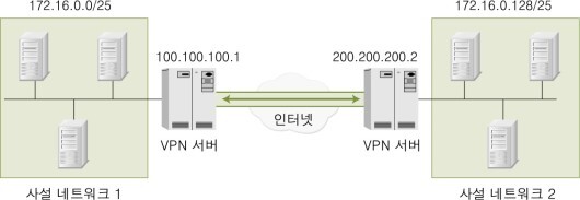 - 원격의 두 지점 간을 내부 네트워크처럼 이용 가능