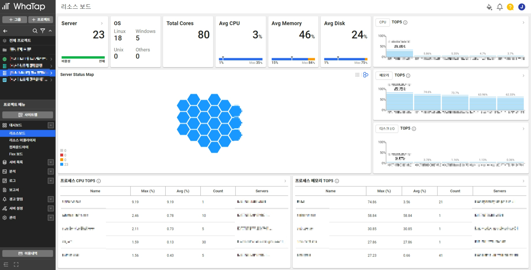 - Server, Application, Database, Kubernetes, URL 성능을 모니터링하여 분석합니다.