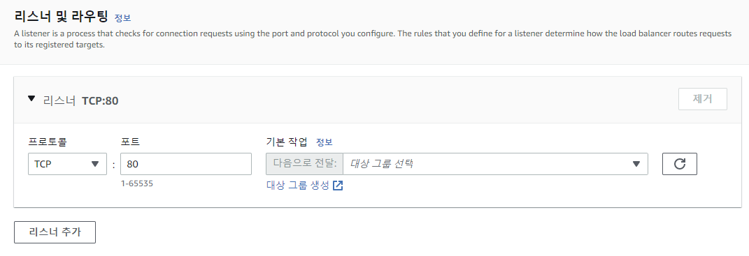 4. NLB가 보내는 부하를 처리할(=받을) 대상(=리스너)을 설정합니다.