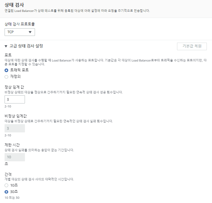 ** 상태 검사를 하는 이유는 NLB가 보내는 부하를 받을 대상(=리스너)이 정상적인 상태인 곳에만 보내기 위해서 입니다.