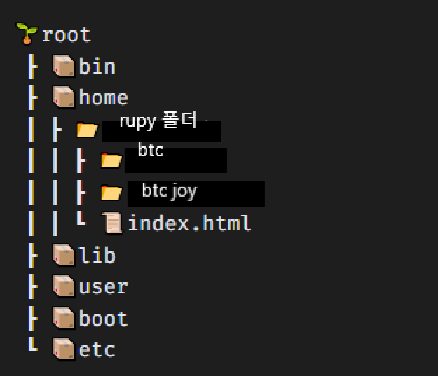 - home: 말그대로 홈 폴더, 로그인한 계정에 따라 폴더가 만들어짐