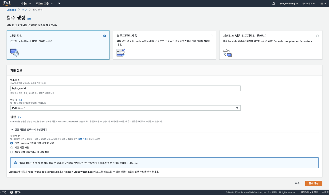 - AWS Lambda 서비스 이용