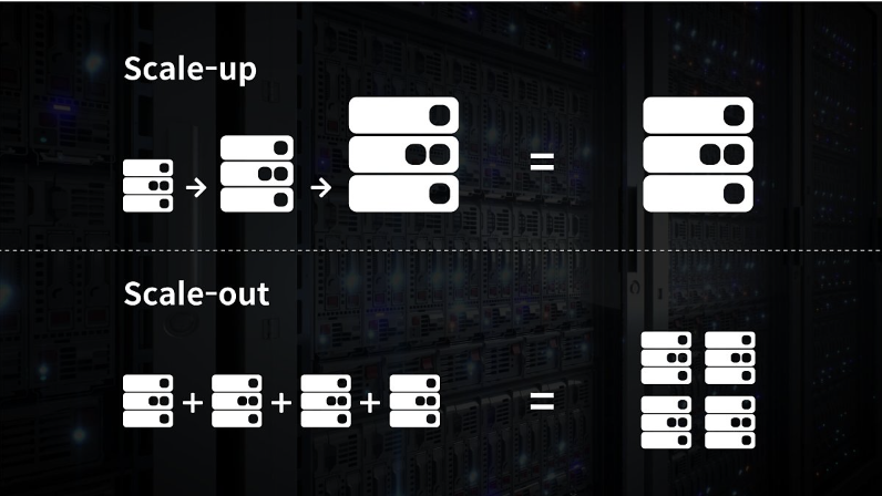 - Scale out : 서버와 동일하거나 낮은 성능의 서버를 두 대 이상 증설하여 운영하는 것을 의미