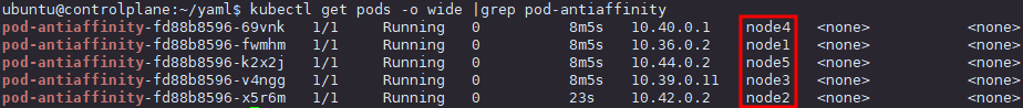 kubectl get pods -o wide --sort-by=.spec.nodeName |grep pod-antiaffinity