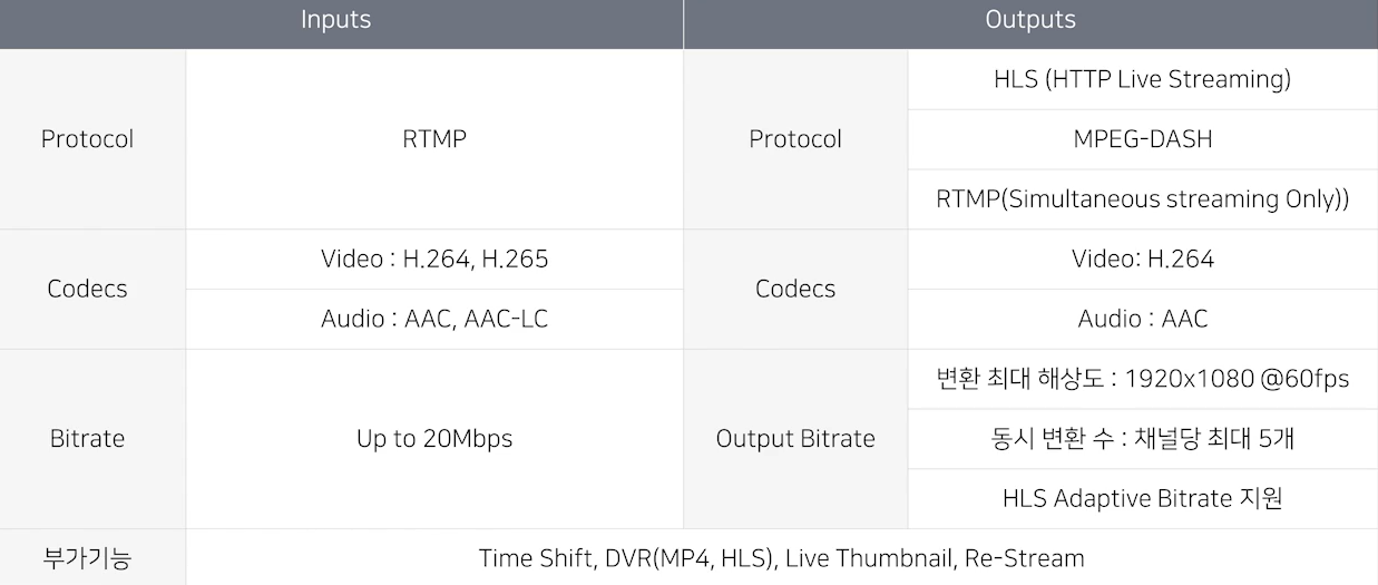 - Live Station, VOD Transcoder와 연동하여 사용 가능