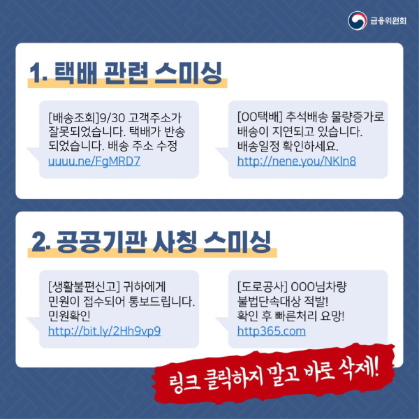- 세무서나 공공기관은 문자 메시지로 커뮤니케이션을 하지 않는다.