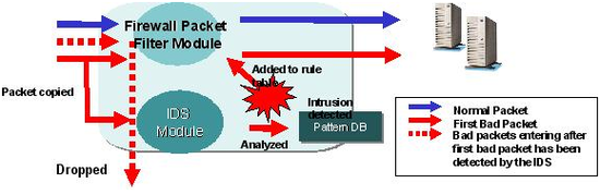 (1) 기존의 ACL에 기반한 침입차단 기능에 알려진 WORM이나 DOS 공격 탐지 모듈 추가