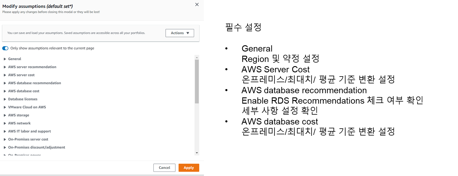 서버 장비 마이그레이션 기준을 On-premise와 같은 사이즈 / 편균 사용량 / 최대 사용량 기준으로 할지 설정을 해주고