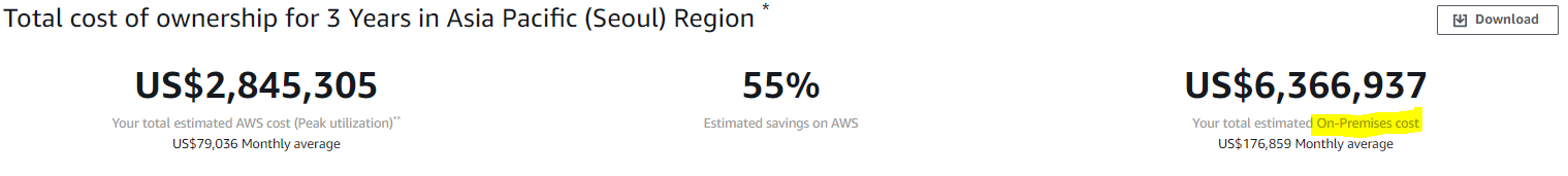 4. AWS IT labor 과 Support 비용에는 AWS EC2, database storage에 대한 admin 비용과 AWS Support plan 비용이 포함되어 있습니다. AWS MPA를 사용하여 도출하였습니다. (각 항목별 상세 내용은 MPA TCO 결과보고서를 참고 바랍니다)