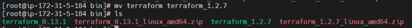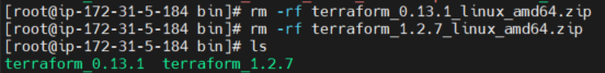 이렇게 두가지 버전을 다운받고 나면 압축을 해제해야 하는데 unzip으로 해제한 테라폼 실행파일의 이름을 각각 버전에 맞게 수정하면 됩니다.