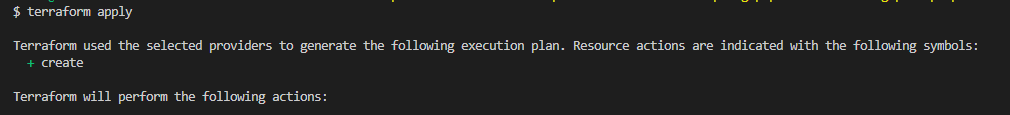 그리고 output값이 있다면 해당 리소스에 대한 output 또한 생성될 예정이라는 것을 한 눈에 알 수 있습니다.