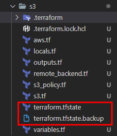 terraform.tfstate.backup은 backup 파일으로 terraform destroy 명령어를 사용하여 리소스를 다 없앨 경우