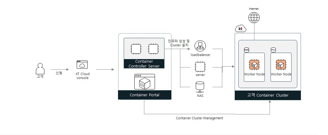 - KT Cloud Container 사용자들이 컨설팅이나 수동 설치 없이 바로 Container 서비스를 사용할 수 있습니다.