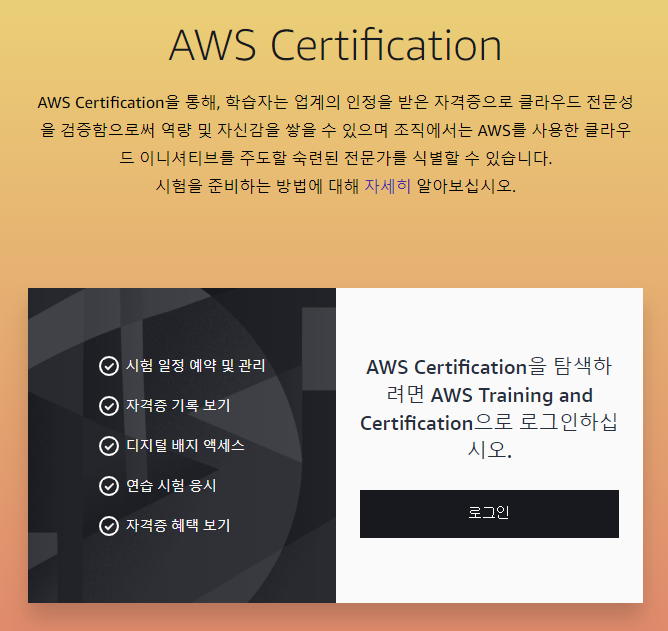 AWS 콘솔 계정이 있다고 하더라도 Certification 계정은 따로 만들어야 합니다.