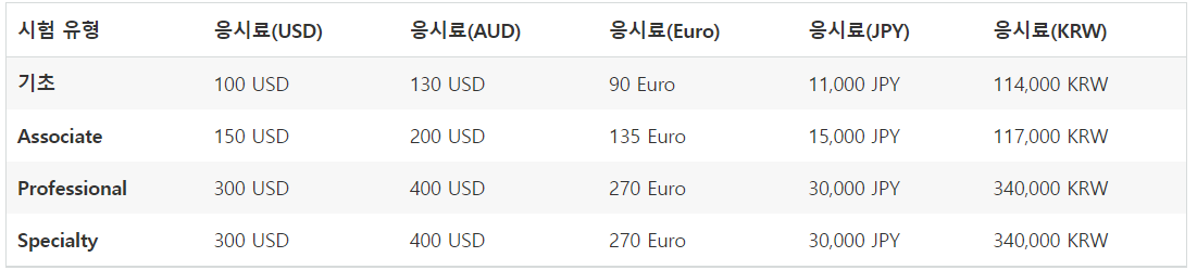 | 기초 | ASSOCIATE | PROFESSIONAL | SPECIALTY |