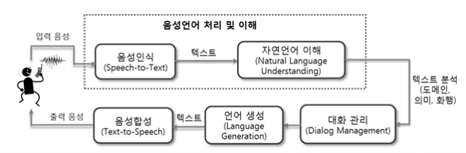 - 사람이 말하는 음성 언어를 컴퓨터가 해석하여 그 내용을 문자 데이터로 전환하는 처리
