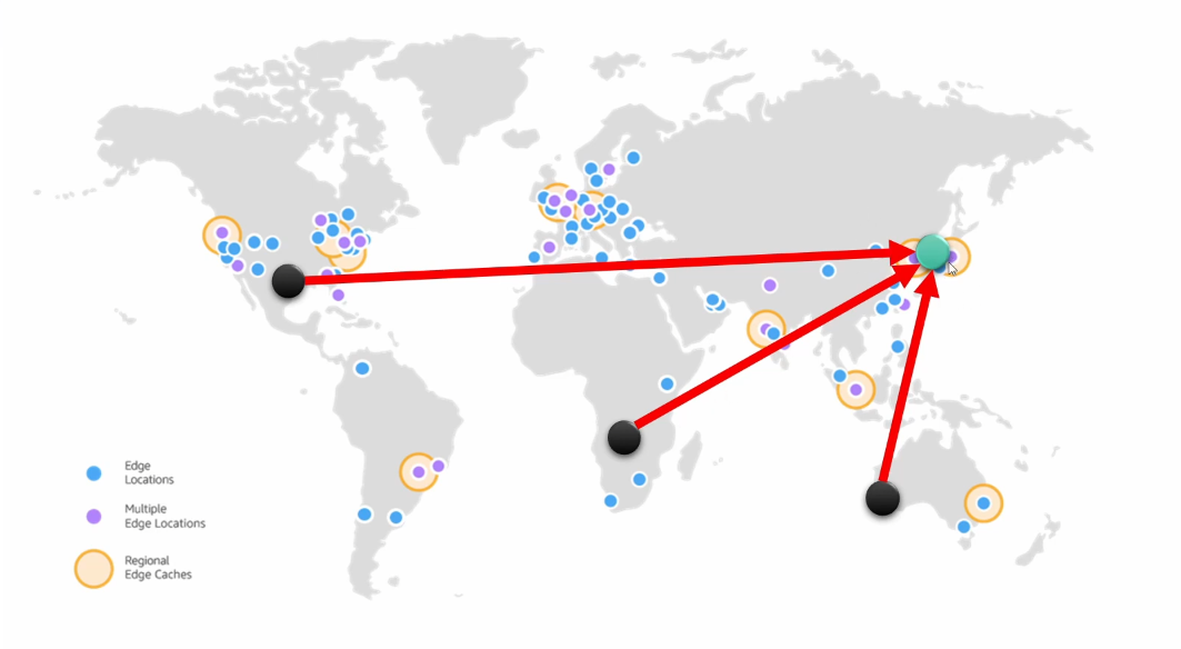 이러한 단점을 극복하기위해 엣지 로케이션 이라는 개념과 시설을 사용 하는 것이다.