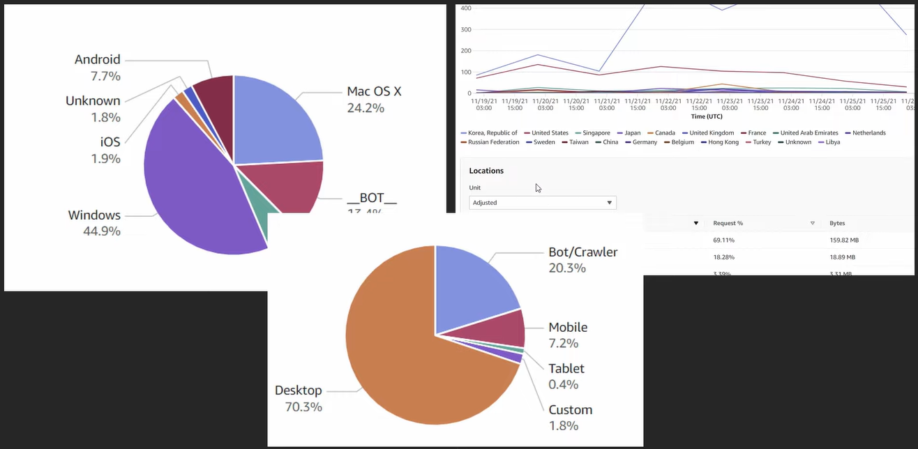 ex) 캐시 상태, 가장 많이 요청 받은 컨텐츠, Top Referrer(어디를 타고 들어와서 어느 웹사이트를 보고있는지..) - 구글 애널리틱스 같은거라고 보면 된다.