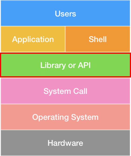 운영체제가 응용 프로그램을 위해 제공하는 함수의 집합입니다. 사용자가 마우스 클릭을 인식시키기 위해서 마우스 버튼이 눌리는 순간부터 컴퓨터 내부의 모든 동작들을 모두 관여하여 프로그래밍하는 것은 너무 비효율적이기 때문에, 기본적이고 최소한의 기능들을 함수로 제공하여, 사용자가 함수를 호출해서 사용할 수 있도록 도와주는 역할을 합니다.