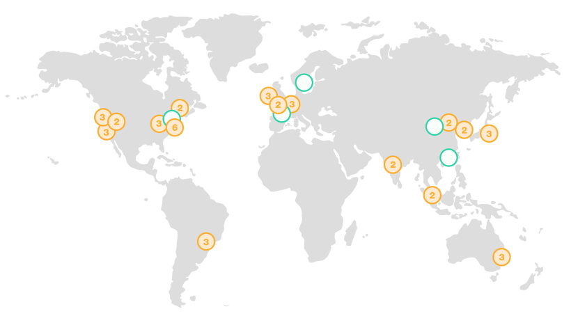 각 데이터 센터는 광통신 전용망(고속 프라이빗 네트워크)로 연결 되어있는데 서로간 너무 멀리 떨어져 있느면 속도면에서 감점이 될 수 있기 때문입니다.