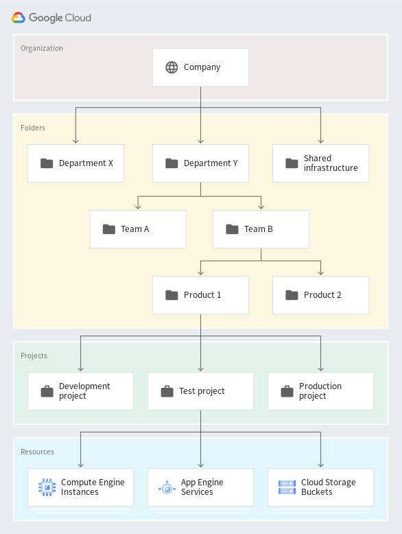 조직 구조에 따라 리소스를 폴더 및 프로젝트로 그룹화함