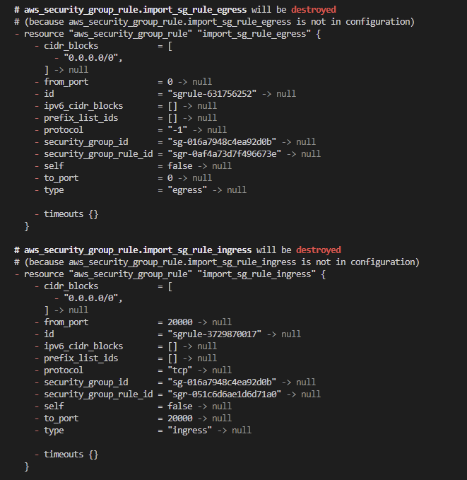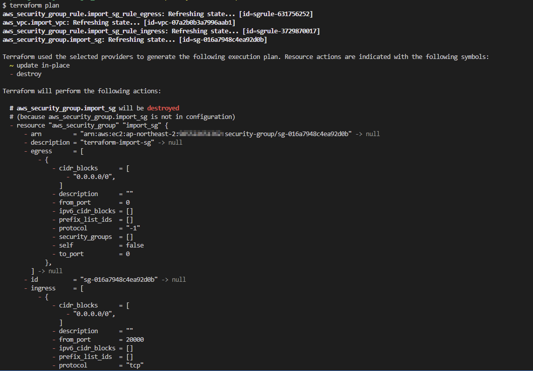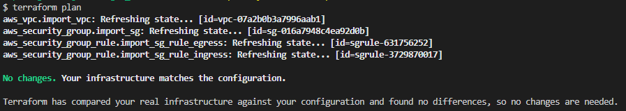 aws_vpc.import_vpc 리소스는 no change라는 뜻이에요.