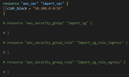 aws_vpc.import_vpc 리소스 외 나머지는 주석처리를 해서 aws_vpc 외 리소스는 없는 상태가 되었기 때문에