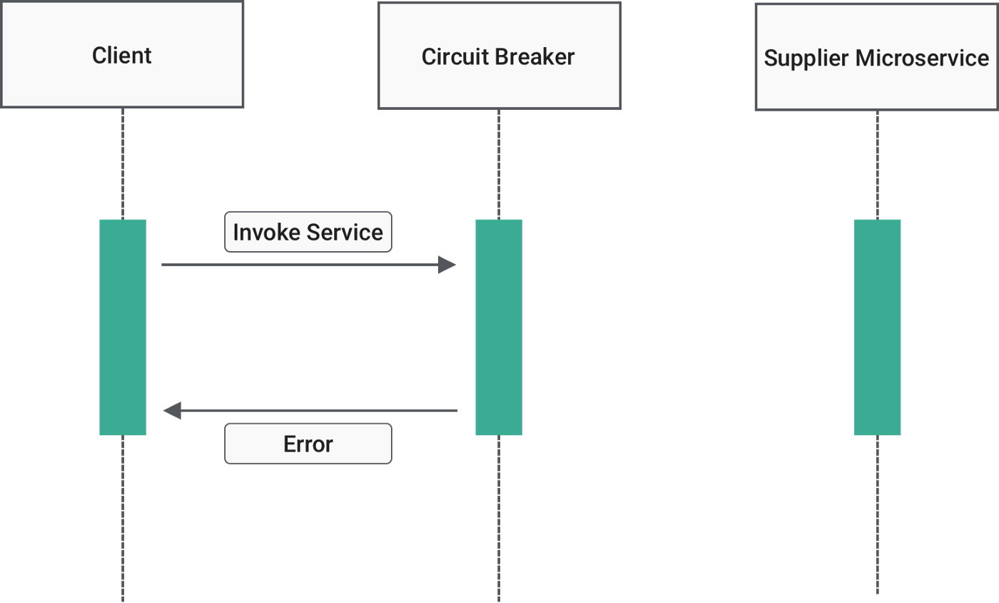 회로 차단기가 “열림” 상태로 이동하면 마이크로 서비스의 요청이 즉시 실패하고 예외가 반환 됩니다.