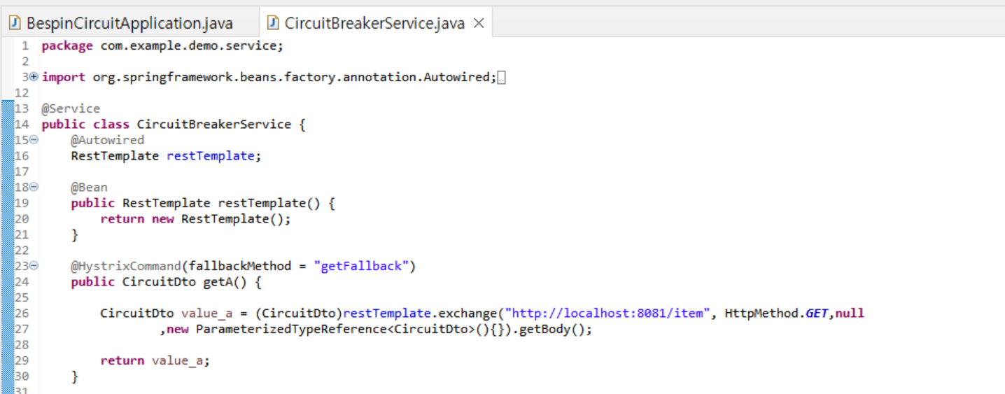 Circuit breaker 적용하기 위해서 실 서비스 메서드 위에