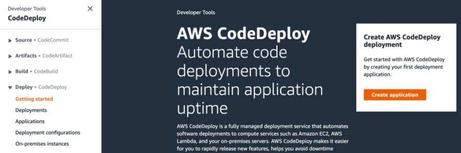 codedeploy > deploy > getting started 화면 우측의 Create Application 을 클릭하여 다음을 진행해 줍니다.