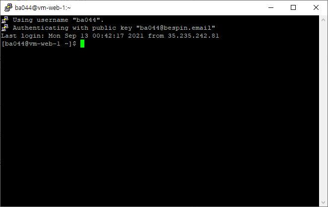생성 후 첫번째 사진에 [연결] 부분 SSH를 누르시면 현재 계정으로 브라우저를 통하여 인스턴스에 접근이 가능합니다. - putty 및 터미널 에뮬레이터 소프트웨어를 이용하여 접속