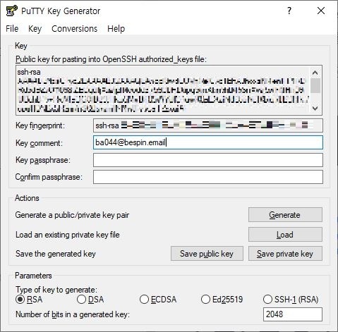 puttygen 이라는 프로그램을 이용하여 ssh 키를 만들어 보겠습니다.