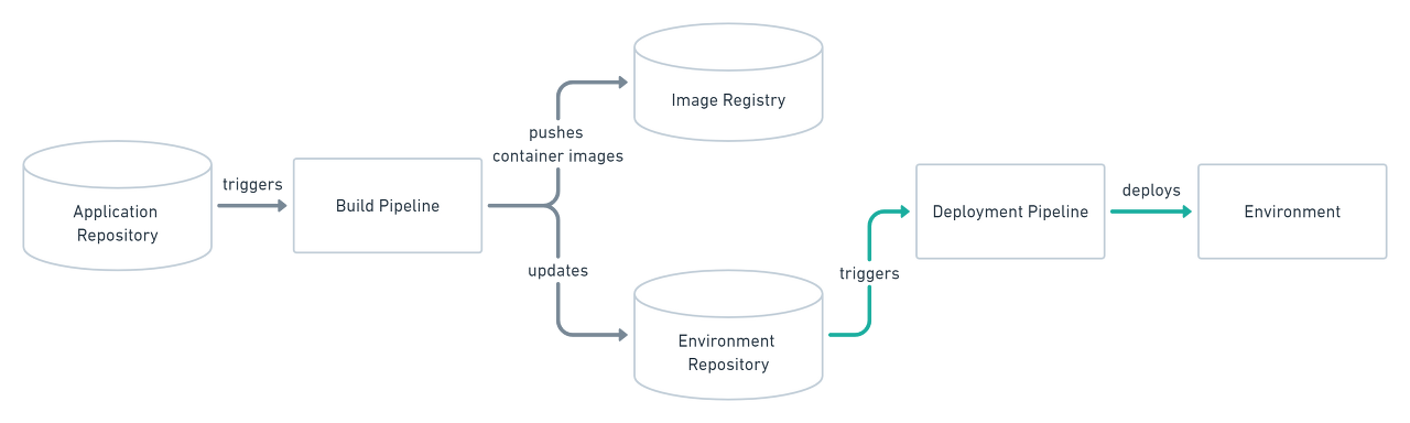 GitOps Pipeline 을 설계할 때는 Git Repository 를 최소 두개 이상 사용하는 것을 권장합니다.