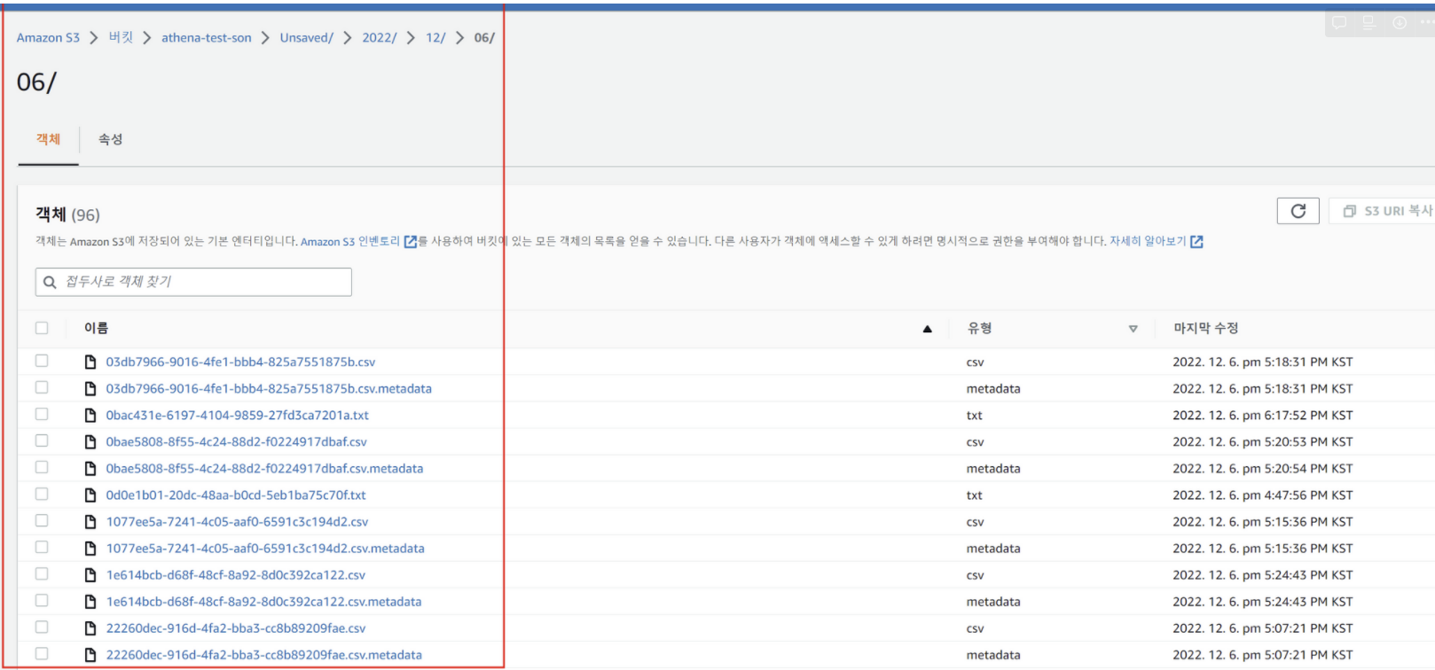 LOCATION 구문에 S3 전체 경로로 잡아서