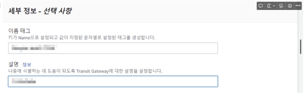 1 VPC → Transit Gateway → Transit Gateway 생성 클릭