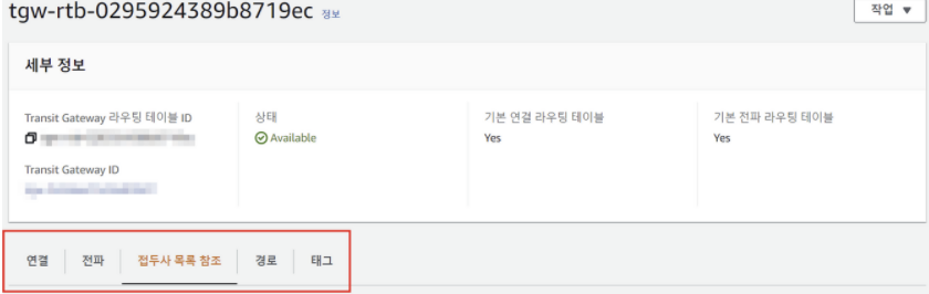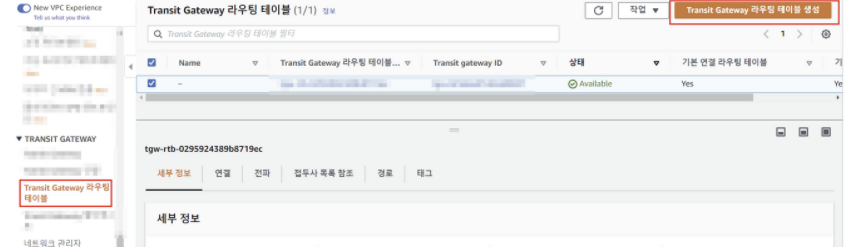 Transit Gateway 라우팅 테이블의 연결을 확인,