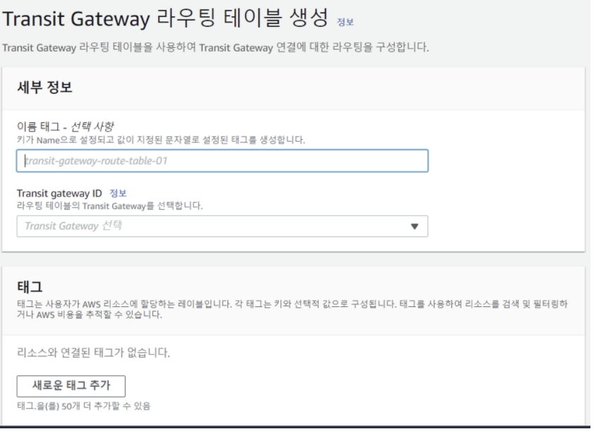 1. Transit Gateway Routeing Table 생성