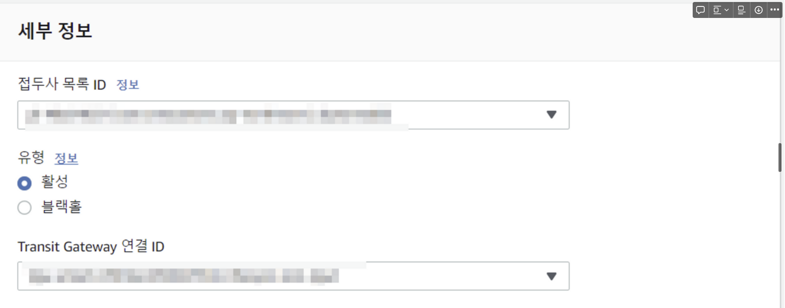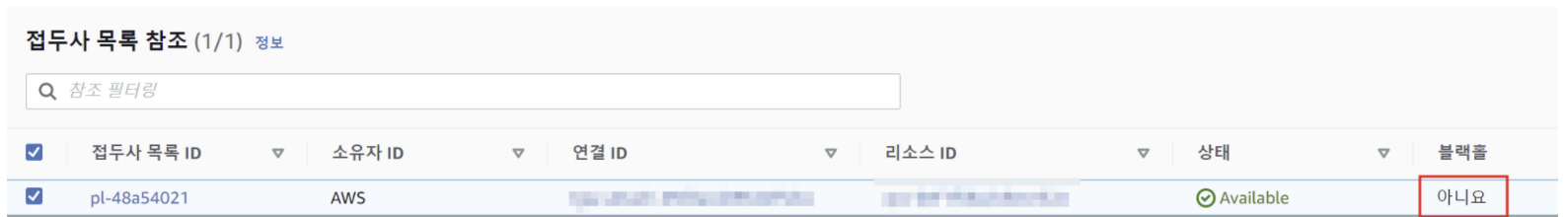 - 접두사 목록 ID: 참조할 접두사 목록의 ID 지정