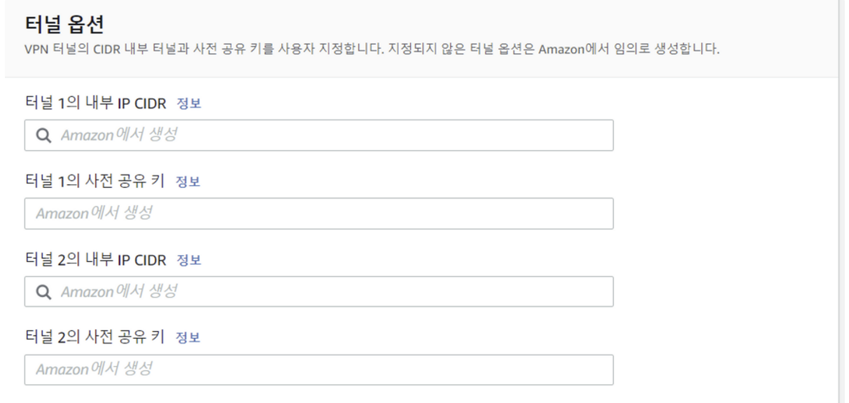 터널에 사용할 CIDR 범위와 사전 공유키를 입력