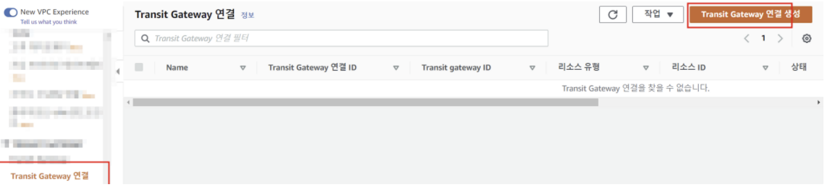 1-1 Transit Gateway → Transit Gateway 연결 → 연결 생성 클릭