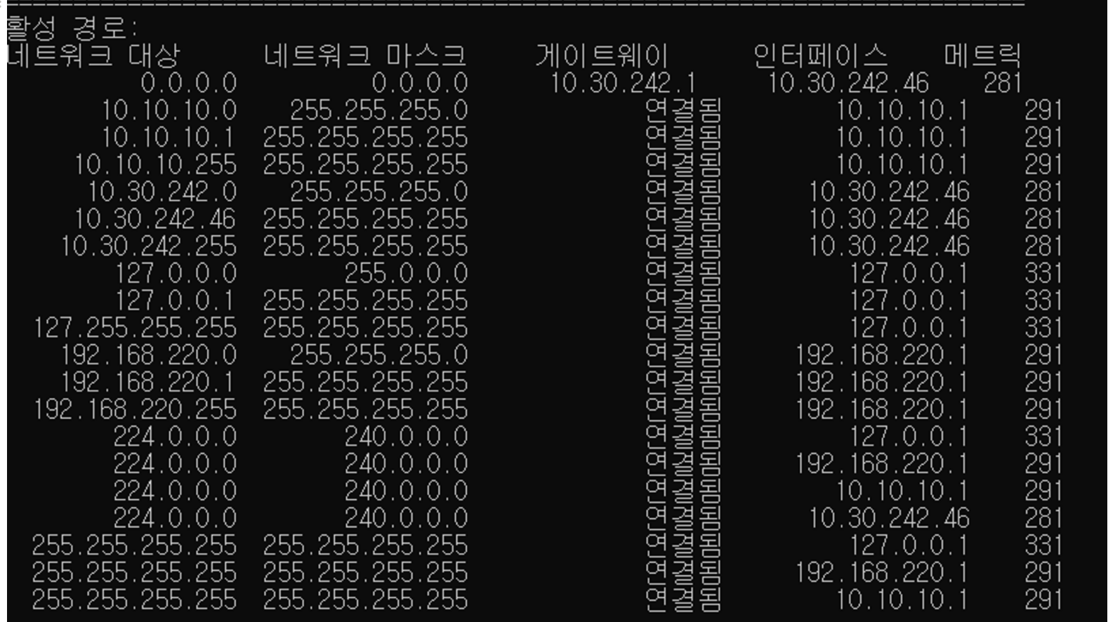 - netstat -r 로 확인 가능