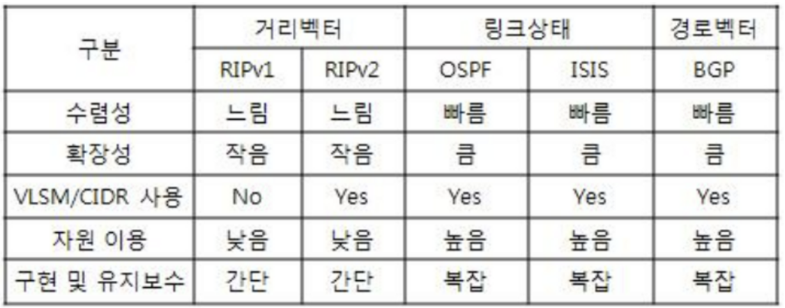 - 라우팅 프로토콜의 구분