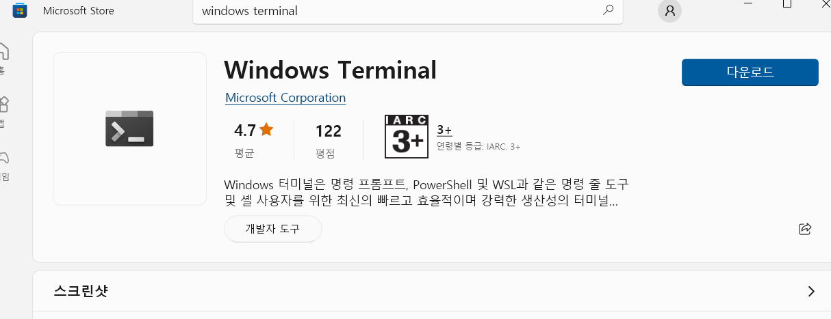 [윈도우] - [Microsoft Store] 에서 Windows Terminal 검색하여 설치